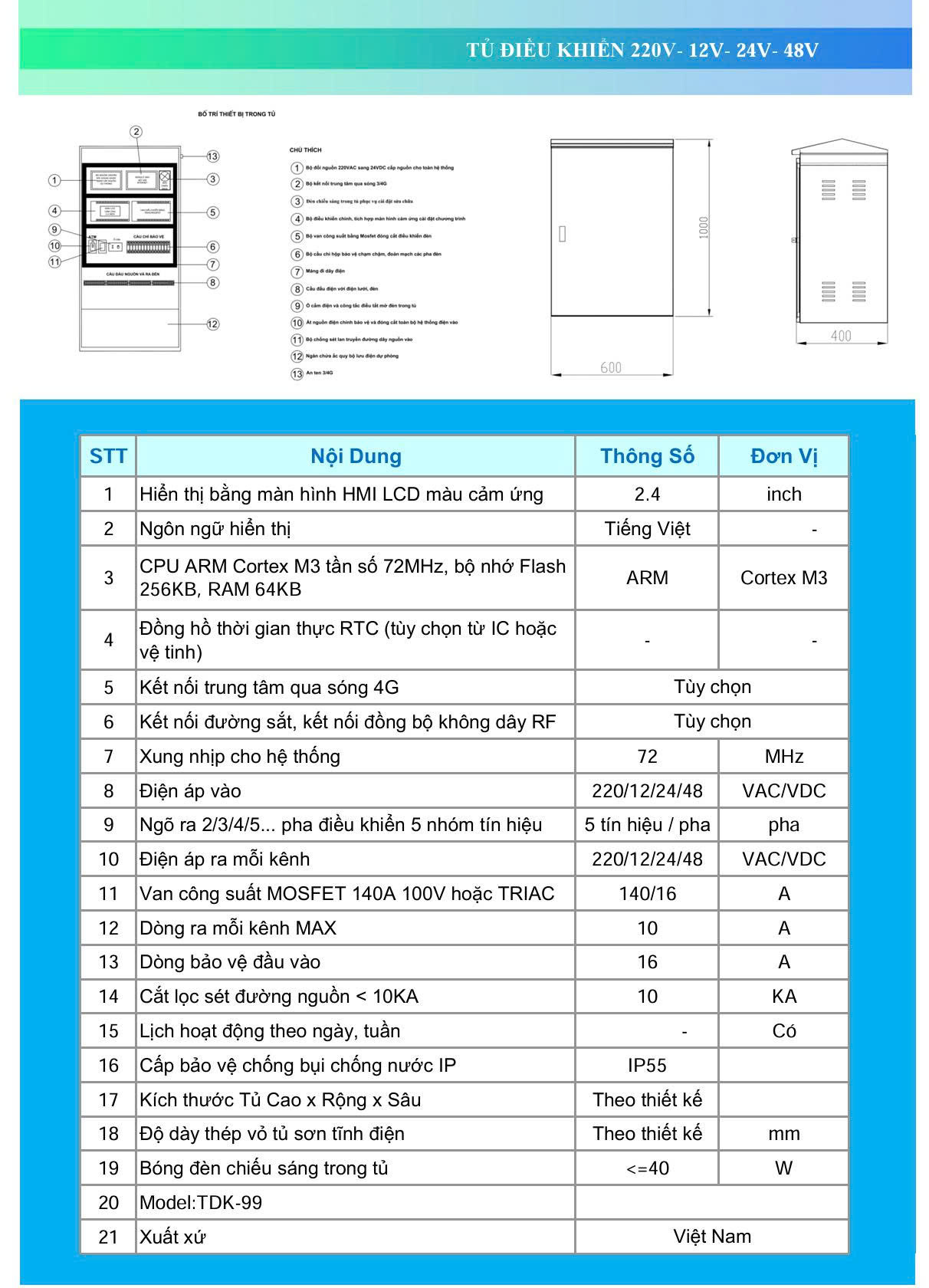 Tủ điều khiển được thiết kế với mục tiêu hoạt động ổn định – chính xác – dễ quản lý – tuổi thọ cao, phù hợp các công trình giao thông đô thị, cao tốc, khu công nghiệp và các dự án ITS hiện đại. Dựa trên bảng thông số kỹ thuật chuẩn, dưới đây là bộ tính năng mạnh mẽ nhất của thiết bị.